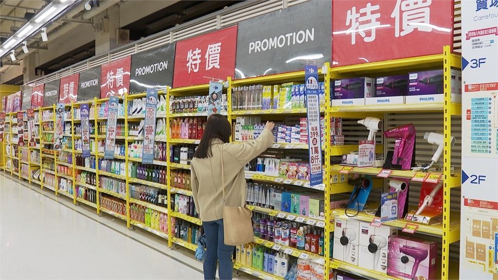 來到另一家連鎖賣場,巨型特價標誌也是一目瞭然,不管是沐浴乳或是零食、罐頭,都能快速找到平價選擇,為了對抗通膨,業者祭出平價專區策略,像是全聯原本就有8折優惠,(2/9~2/17)這次針對衛生紙、尿布等日用品,單筆滿千再送千元福利點數,換算下來最高可打9折;家樂福的美妝、身體清潔保養、紙品均有促銷或滿額加價購,最高下殺到買一送一,相當於五折;大潤發則不定期舉辦季節性促銷,優惠項目包括開學季的各項文具、鞋子,最多下殺2~3成。