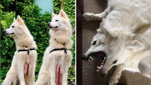 國外飼主喬(Joe)家中養了兩隻活潑可愛的德國牧羊犬混哈士奇狗狗,分別名叫凱(Kai)跟史卡拉(Skala),牠們不只是同胎兄弟姊妹,還是形影不離的好朋友,整天像連體嬰一樣黏在一起。喬笑說,凱是一個很調皮的男生,牠喜歡趁史卡拉在睡覺的時候,偷咬人家的尾巴叫對方起來陪自己玩,有時候史卡拉會因為被牠惹怒,而大聲地吠叫,不過牠們總是越吵感情越好!