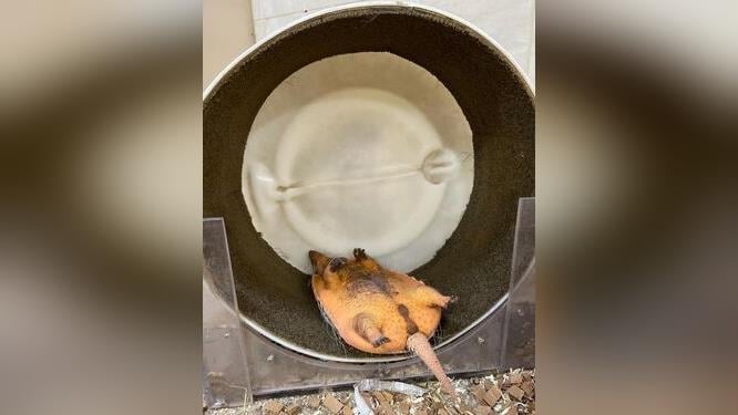 減肥什麼的..明天再說吧!可愛犰狳躺運動滾輪上「四腳朝天」呼呼大睡:真舒服~