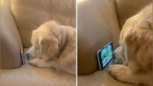 許多汪星人出門散步時,都喜歡像討債集團一樣緊緊追著松鼠跑,而國外這隻可愛的黃金獵犬平時在家還喜歡盯著手機螢幕中的松鼠!根據DailyPaws的報導,這隻名叫洛基(Rocky)的狗狗因為年紀還小,每當有客人來訪時,牠很容易變得過度亢奮在家裡狂奔,不過牠的爸媽並沒有因此把牠關在籠子或房間裡,而是拿出手機並播放松鼠影片,如此一來洛基就會瞬間冷靜下來,目不轉睛地盯著手機螢幕!