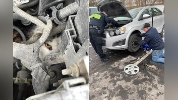天氣寒冷的時候,體型嬌小的流浪貓可能會偷偷鑽進汽車的引擎內取暖。根據國外媒體People的報導,一名來自賓夕法尼亞州的車主在準備開車時,發現引擎內躲著一隻小奶貓,於是立刻掀開車蓋,試圖救出小奶貓。然而,小奶貓實在太害怕了,所以越躲越裡面,讓車主束手無策,只好向附近的民眾求救。