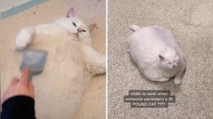 14公斤圓滾滾白喵被棄養!躺地翻肚像「方形抱枕」狂找志工撒嬌:快幫偶找新家~