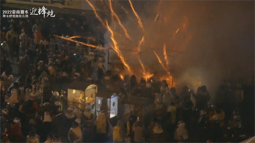 元宵節碰上疫情,台南鹽水蜂炮活動也縮小規模,今晚六點半準時開炸,今年因考量防疫,由轎班分4條路線收炮,蜂炮也採定點施放,並禁止遊客犁蜂炮,雖然人潮不如以往,但參加的民眾都說,還是很期待。