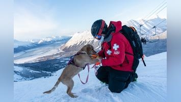 據國外媒體PEOPLE的報導,四個月大的黃金獵犬「斯托米」(Stormy)在阿拉斯加州的「艾麗斯卡度假村」(Alyeska Resort)接受了度假村提供的雪崩救援犬的訓練。為了保護遊客們在這1610英畝的滑雪場地免受威脅。艾麗斯卡度假村擁有的一支狗狗救援隊伍能快速嗅出迷路或埋在雪中的遇難遊客。牠們只需花費15至20分鐘就能搜尋完畢一個區域,相比人類的多個小時來說快上許多倍。就在去年度假村為救援隊伍新增一名新成員,一位來自加利福尼亞洲的純種黃金獵犬。