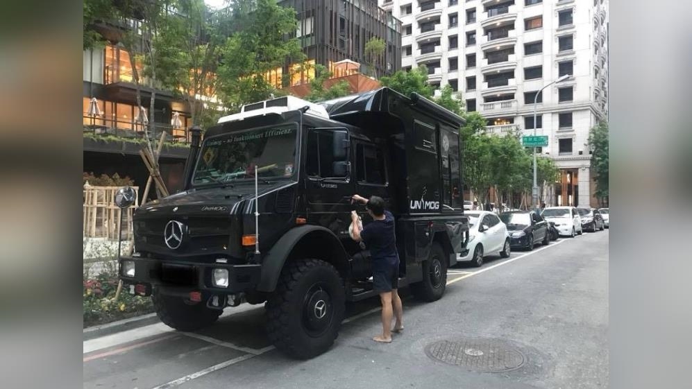 有網友在臉書社團「爆廢公社」發文表示,他在台中市七期市政北路上目擊1輛黑色的賓士越野露營車停在路邊,不僅車體和輪胎非常大、底盤也很高,看上去如同一輛卡車,路邊的停車格根本無法完全容納,導致輪胎只能停在線外。讓原PO意外的是,車主竟然是「赤腳」上車,霸氣模樣讓原PO忍不住唱起頑童經典歌曲〈幹大事〉的歌詞,「幹大事我幹大的,賓士AMG我開大的」。