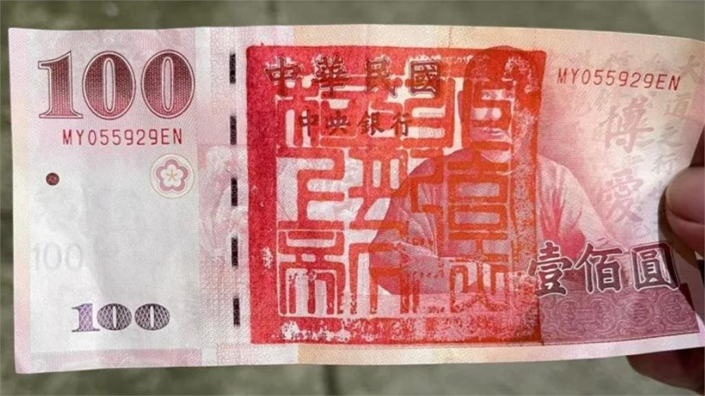 生活中心/翁語岑報導不少充滿紀念意義的貨幣,上面都會印著超稀有的花樣圖案,因此格外有收藏價值。近日有網友在臉書社團「爆廢公社」中發文,表示收到一張「蓋有紅印」的紙鈔,上面看著像有9個字,好奇向廣大網友求解。