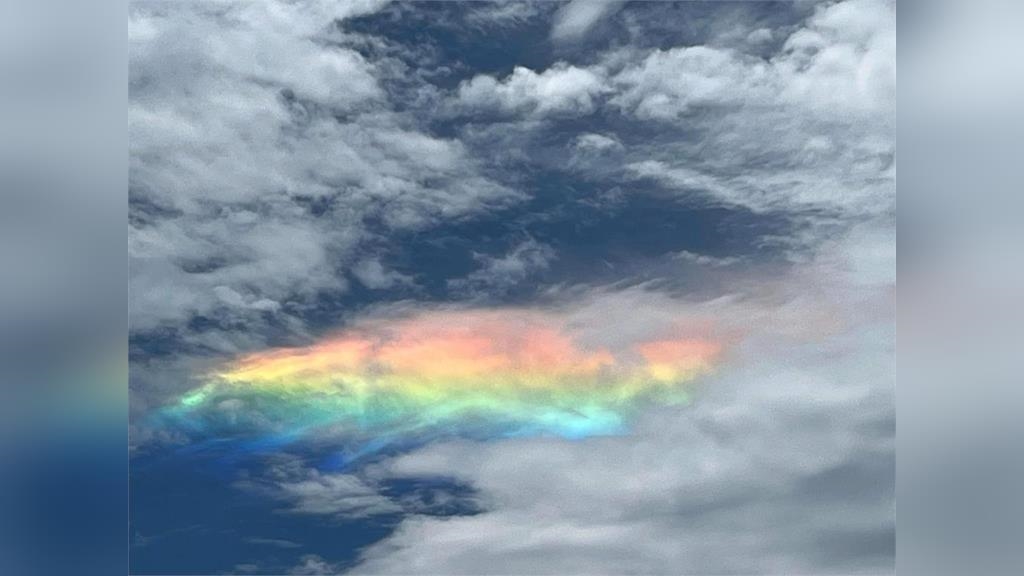 中央氣象局長鄭明典今日中午透過臉書PO兩張自然奇景「火彩虹」美照,雲朵彷彿竄出火焰一般非常壯觀,不少網友直呼「好特別」、「好美」。