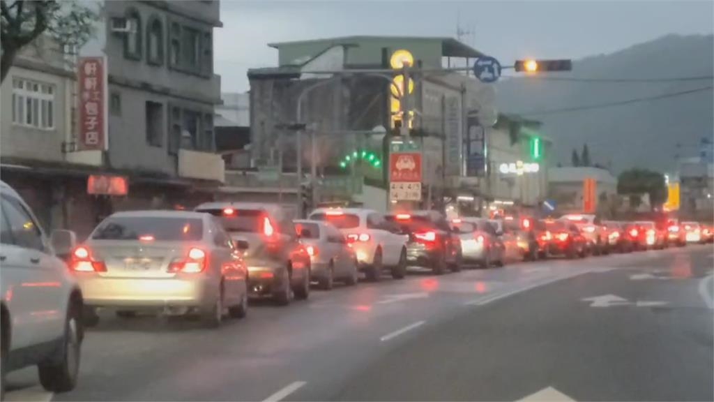 清明連假來到第三天,東部地區,有些返鄉的民眾,提前回到工作地,加上出遊北返的車流,在花蓮台九線145公里處,往蘇花改北上路段前,從中午過後,就出現大量車潮,到了傍晚,宜蘭頭城交流道前,車子也是大排長龍,一路塞到礁溪市區。
