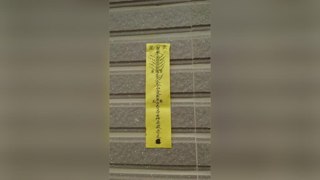 原PO在臉書《爆料公社》表示,他在昨天(22日)去看中古屋,抵達社區後,原PO發現住戶門口都貼上一張黃色符咒,詢問房仲這些符咒的用途,房仲解釋「只是貼平安安心的」,問了管理員也說不知道為什麼。讓原PO擔心這是否因為是凶宅所以有這些符咒,該符咒被貼在各家門口上,上頭還寫著「九天玄女收斬東西南北」、「神惡煞急走」等語。