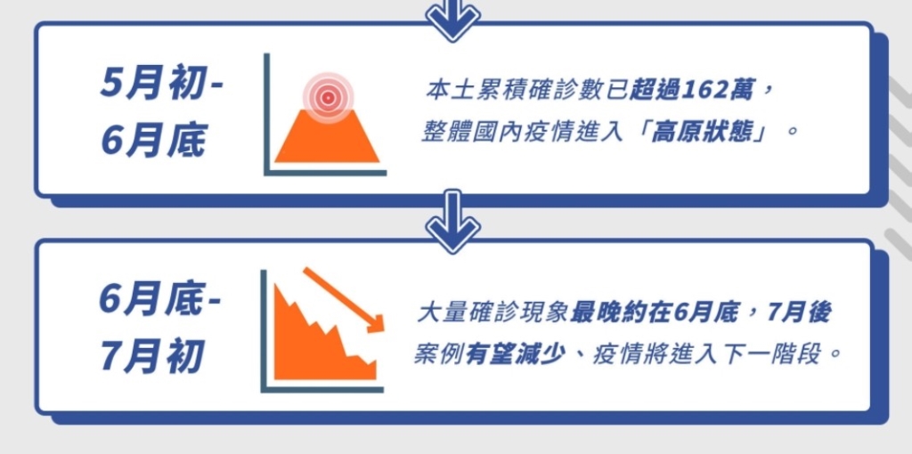 「單日確診最多就是在8-10萬之間,這是合理推估,以目前這個狀況繼續,最慢6月上旬就會往下掉,但是不排除還是會有一個疫情的尾巴,合理的話會一直走到6月下旬!」