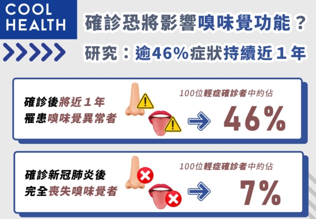 確診影響嗅味覺功能? 46%患者持續逾一年