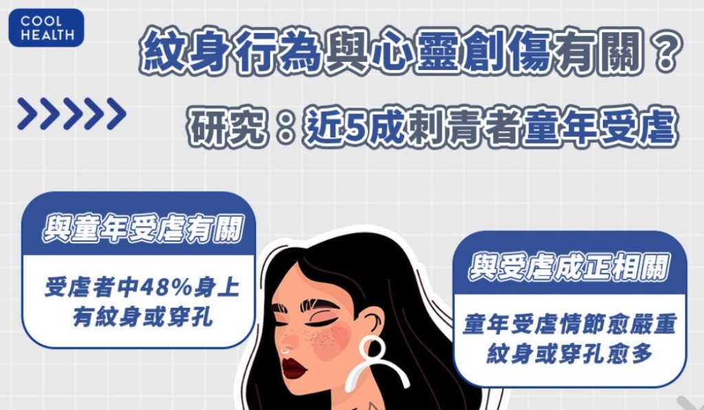 刺青或紋身近年來逐漸廣為大眾所接受,不少年輕人將刺青作為表達個人或社會文化的形式之一。不過,當心理學家深入研究刺青者的心理狀態,發現刺青行為不僅只是想展現自我、更可能與刺青者過往的心靈創傷有關?《BMC Psychology》刊載研究指稱,兒童時期遭受虐待、忽視者,成年後更可能採取紋身或穿孔行為。