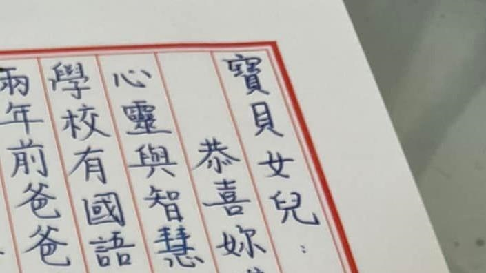 該名父親在臉書社團《報料公社》寫下「給上輩子的情人寫信,傳統信紙,既死板又復古,But it’s my style」,只見該父親在信件中,恭喜女兒要升小學三年級,也強調自己曾教導女兒「字要寫工整、若班上有比賽也可以為自己、班級爭光」,他鼓勵女兒可以利用暑假時間來好好學習。