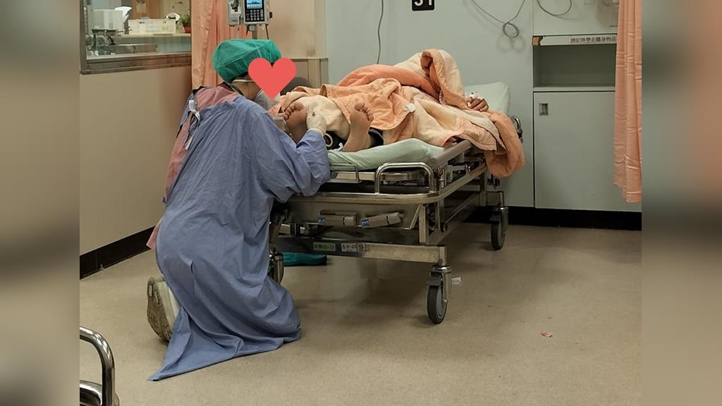 護理師雙膝跪地幫抽血!「臉靠近病患腳邊」不怕髒…網感動:天使的背影
