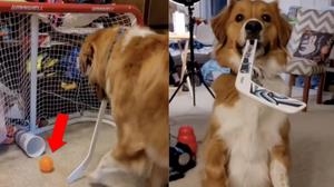 汪星人玩起曲棍球根本「職業球員附身」 進球後一臉得意:我超強對吧?