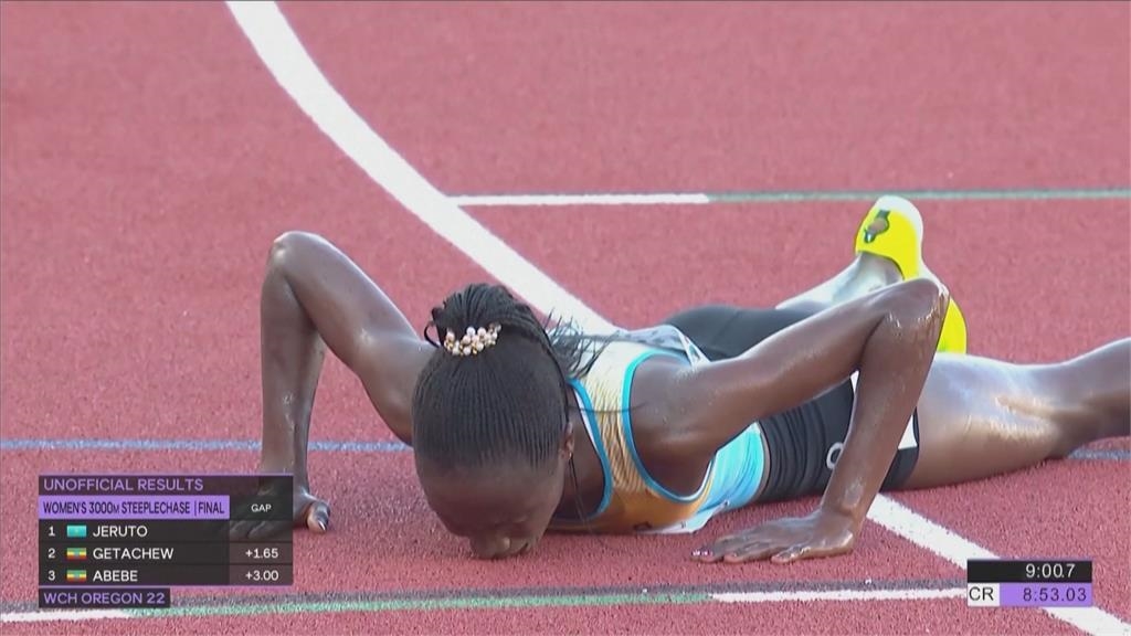 在美國奧勒岡州尤金舉行的世界田徑錦標賽,今天又傳出佳績,女子三千公尺障礙賽,自肯亞歸化哈薩克的傑魯托,以8分53秒03奪下金牌,同時也刷新了世錦賽的紀錄。