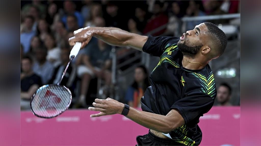 馬來西亞29日晚間在羽球團體賽對決牙買加,其中羽球男單項目打到第二局,牙買加選手山謬(Samuel Ricketts)腳上的黑色球鞋突然破裂,比賽因此暫停,雖然他的教練先後拿出2雙球鞋,但是都不合他的腳。