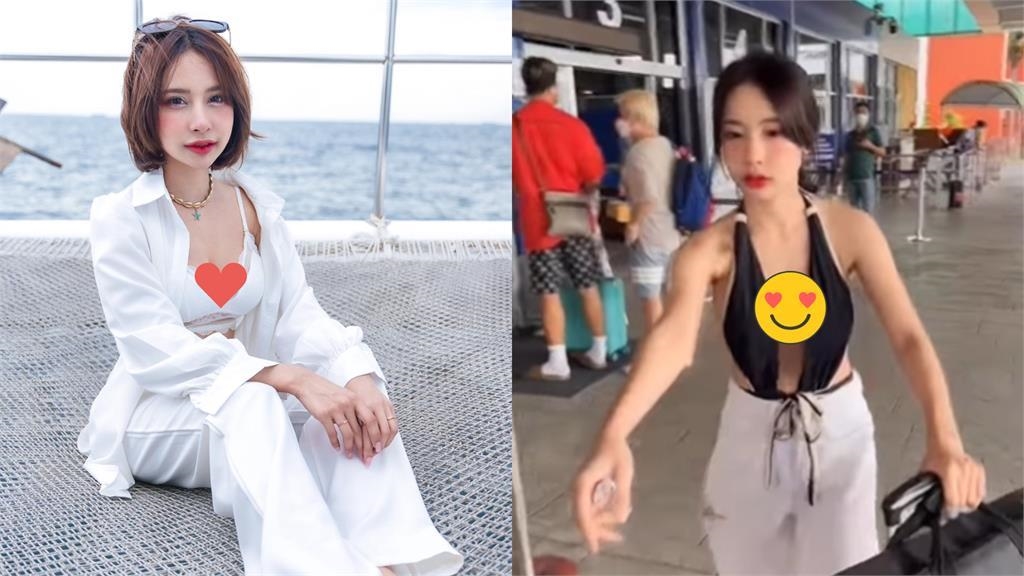 這位引發討論的正妹其實是泰國知名DJ芭比莫絲(Barbie Mozz),在IG擁有58.7萬粉絲,頁面上更是充斥著不少辣照。在這段機場短片中,更是大破尺度,芭比莫絲整個背部全裸,且當她彎腰整理行李時,側面視角讓她傲人上圍全看光,最後轉向正面向拍攝者拿東西時,領口更是開到肚臍下,讓人害羞到無法直視。