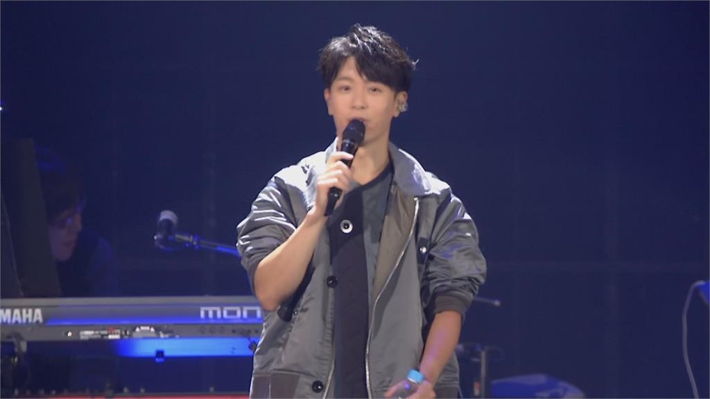 穿著深灰色外套,韋禮安現身,跟歌迷對唱好天氣,氣氛好暖心。