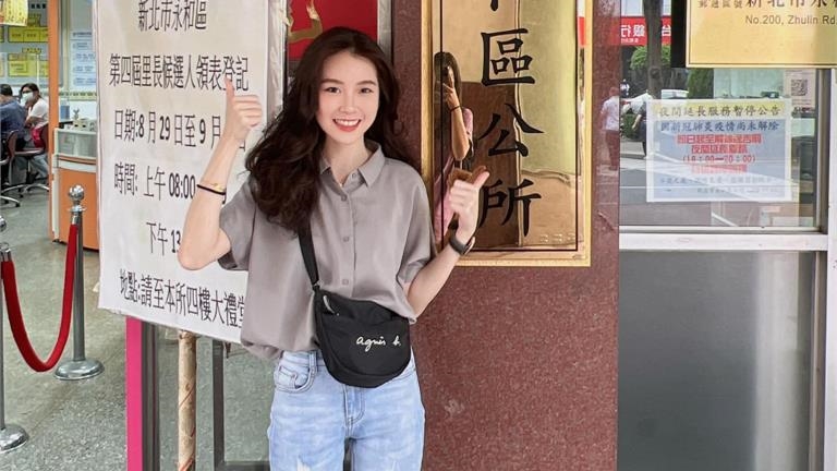 年僅23歲的新北永和永福里里長候選人陳紫渝,因為長相甜美及超仙氣質被封為「最美里長候選人」,在網路上擁有超高聲量、坐擁大批粉絲,每次發文總能引起轟動,繼17日介紹身邊的超萌小小助選員,今(26)日再度發文,講述拜票過程遇到的小插曲,留言區瞬間變成大型告白現場。