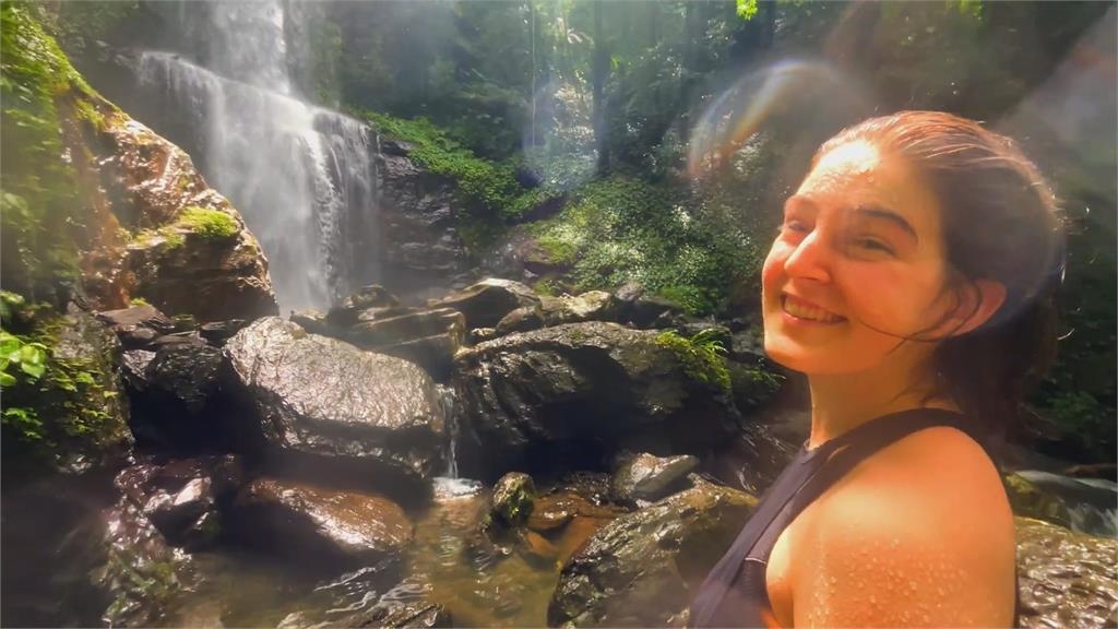 台灣秘境之最!加拿大女孩騎車訪雲森瀑布 入泉中濕透高呼:嘆為觀止