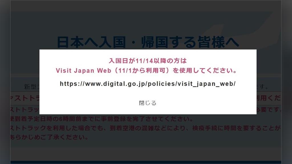 不過,「MySOS」公告,11月14日起入境的人士須改用「Visit Japan Web」,該網站在11月1日起即可使用。