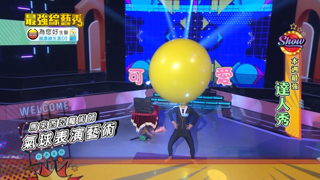 本週《最強綜藝秀》仍然熱鬧非凡,趣味橫生!看過氣球任何表演,但你有看過人入氣球嗎?人在氣球裡像顆丸子插在牙籤上,又像是一顆行走的燈炮走啊走的,超級有可愛,讓現場笑不可抑。