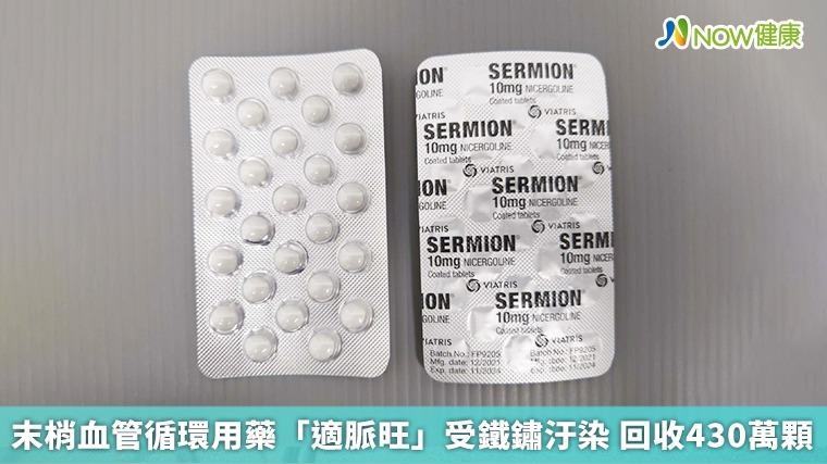 【NOW健康 葉立斌/台北報導】食藥署在10月31日公告,由暉致醫藥股份有限公司製造的「適脈旺」糖衣錠10毫克(SERMION TABLETS 10MG)因為在7月時,院方發現藥物外觀出現黃黑色斑點,當時已啟動回收並調查,發現與生產機器零件生鏽有關。藥廠更進一步主動回收5批約430萬顆。
