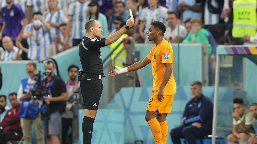 2022卡達世界盃足球賽進入8強淘汰賽環節,輸了就得打包回家,阿根廷與荷蘭踢出火爆一役,正規賽尾聲甚至快要打起來,兩軍板凳全清空,這或許跟主審拉奧斯先前的發牌也有關係,他在第31分鐘時送出首張黃牌,給阿根廷助理教練山謬(Walter Samuel),此後就「牌不間斷」,算一算上半場共給了5張黃牌,下半場更有7張,延長賽3張,PK戰讓荷蘭鄧弗里斯(Denzel Dumfries)連吃2張黃牌轉成1張紅牌,同隊的諾朗(Noa Lang)則吞下第18張,超越世界盃的16張黃牌紀錄,引發討論。