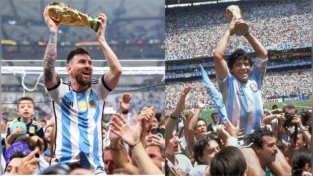 即時中心/顏一軒報導2022年卡達世界盃總冠軍賽,阿根廷最終在陣中球星梅西(Lionel Messi)領軍之下,擊敗勁敵法國,成功奪冠,而在拿下大力神盃(FIFA World Cup Trophy)後,他高舉獎盃跨騎至隊友頭上的慶祝動作,是否有似曾相似的感覺?因為他復刻了阿根廷「世紀球王」馬拉度納(Diego Maradona)36年前奪冠時的經典動作。