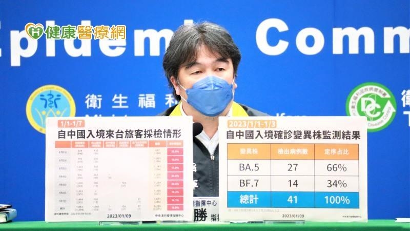 從1月1日至3日中國來台確診旅客之基因定序結果顯示,三分之二的確診旅客為BA.5,三分之一為BF.7,未發現新的變異株。羅一鈞提到,跟其他來源國相比,中國主要為BA.5、BF.7,其他來源國境外移入病例的病毒株比較多元,有包括BA.5、BA.2.75、BQ.1、XBB、BF.7。
