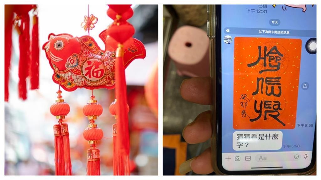 從網友分享的照片中,能看到春聯中央用毛筆寫著3個祝福大字,左下角則寫著「癸卯春」3個小字,雖然毛筆寫著漂亮工整,卻完全看不出來是什麼字,也引來大批網友討論「撿到槍嗎?」、「第一個字很像臉欸」、「看到撿到槍的跟我來」、「都不要回讓岳父尷尬?」、「還是撿到蝦呀?」,看完也是滿頭霧水,不知道上面到底寫了什麼。