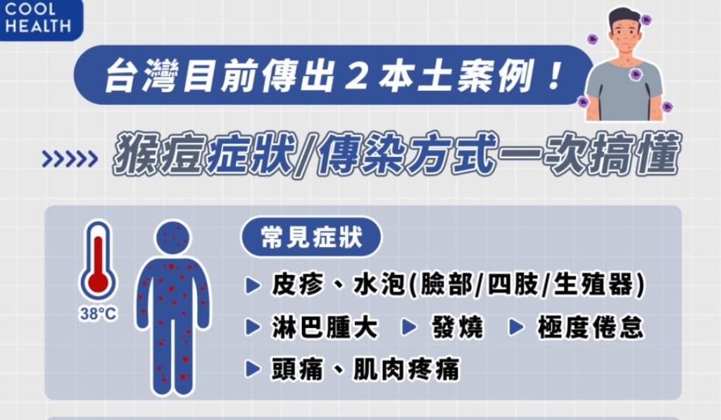猴痘病毒首見本土案例! 2個案皆無出國旅遊史 疾管署:遇6大症狀快就醫