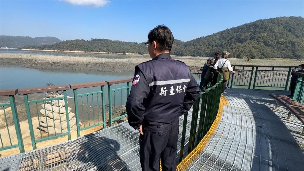 日管處伊達邵主任陳逸全表示,「現在九蛙的平台都已經完全的開放,民眾都可以就近,靠在我們正式的圍籬上面,來拍照都沒有問題,我們還是呼籲現在雖然是低水位,可是還是不要有跨越欄杆,爬到水裡面泥巴地的狀況,因為這樣子一方面也是違反,水利署相關的水庫蓄水範圍使用辦法,而且也會造成你自身安全的危險。」