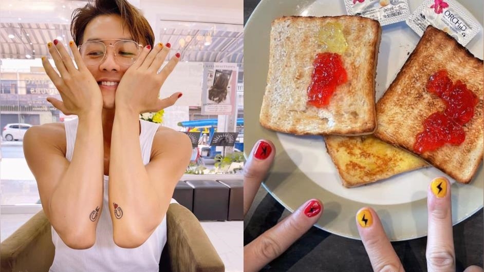 吳克群昨天在臉書放上照片,其中一張把雙手靠在臉頰露出微笑,仔細一看手上竟然藏著亮點,原來他跑去做美甲,指甲呈現紅黃色交錯,再添上閃電符號以及英文名字的代表字母「K」,由於這次的體驗相當美好,他笑稱「從此一發不可收拾」,甚至還辦了會員卡。