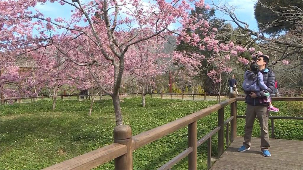 趁著好天氣,不少遊客來感受櫻花盛開之美,不過林管處表示,這還不是最盛開時期,因為櫻王染井吉野櫻還在含苞待放。