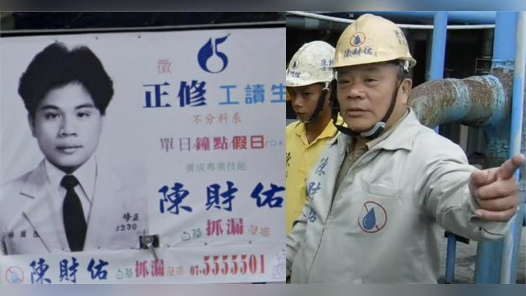 抓漏專家「陳財佑」是因一張黑白照片當宣傳照而成為高雄當地傳說,近日前桃園市議員王浩宇貼出他的近照,從照片看來,陳財佑戴著安全帽,還穿著灰色印有陳財佑字樣的外套,在有水管的施工地點指揮,有網友則在貼文底下留言回憶「我家以前漏水就是找他!真的有效。」