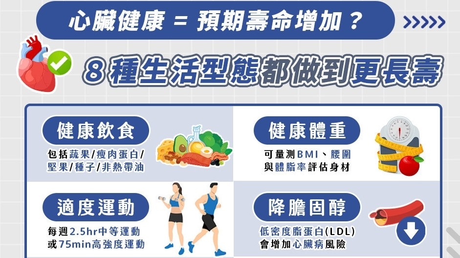 心臟健康=預期壽命增加? 8種生活型態都做到更長壽