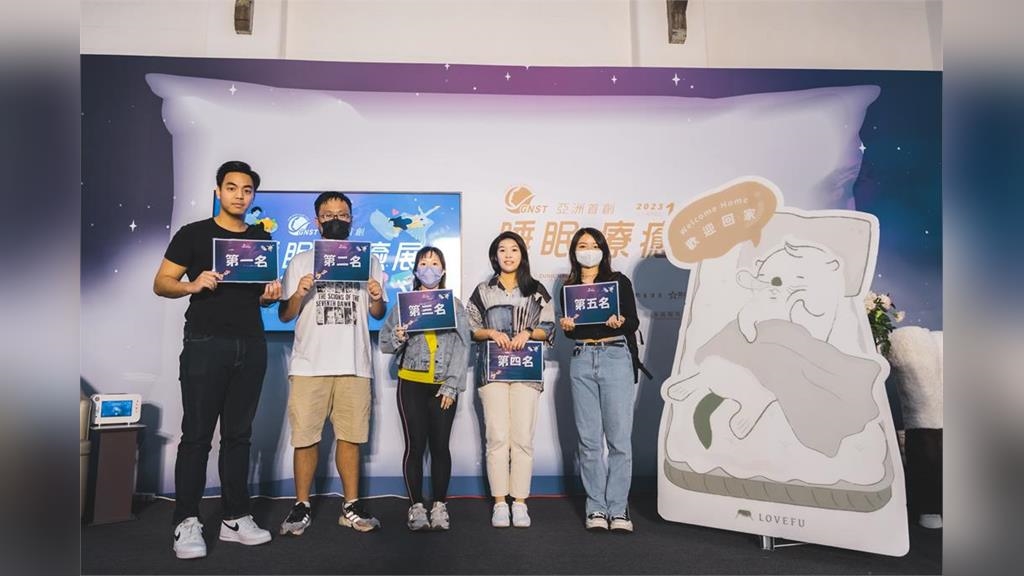 全台首創睡眠療癒展今(14)日上午在松山文創園區展開,現場請來睡眠專家開講,主辦方更舉辦有趣的發呆與睡覺大賽,要找出不受干擾、最會睡的參賽者。一名25歲男子以「倒頭就睡」的專長打敗60名參賽者,抱走總價值近2萬的無光厚墊床墊及月眠枕冠軍好禮。