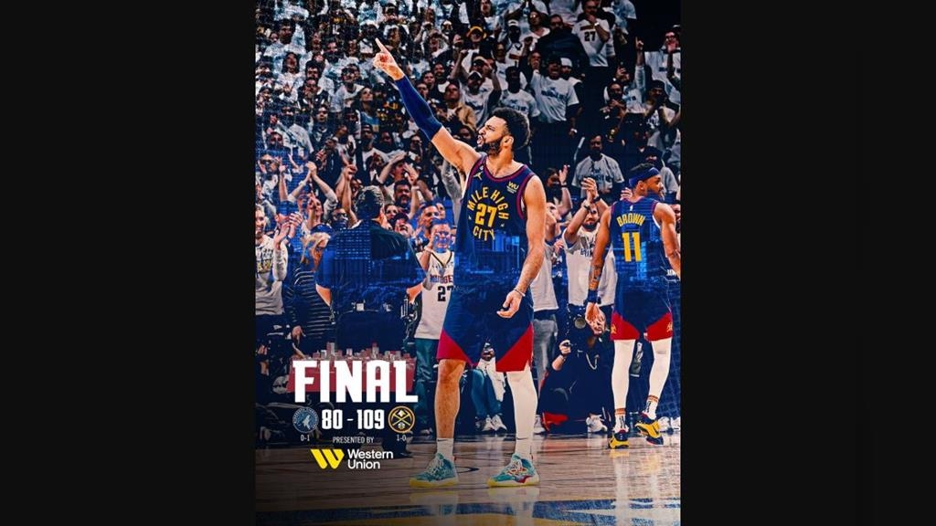 NBA金塊今天得分多點開花,全隊6人得分達兩位數,其中以莫瑞攻下24分最多,加上約基奇、小波特都有「雙十」演出,最終109比80輕鬆擊退灰狼,拿下季後賽首戰勝利。