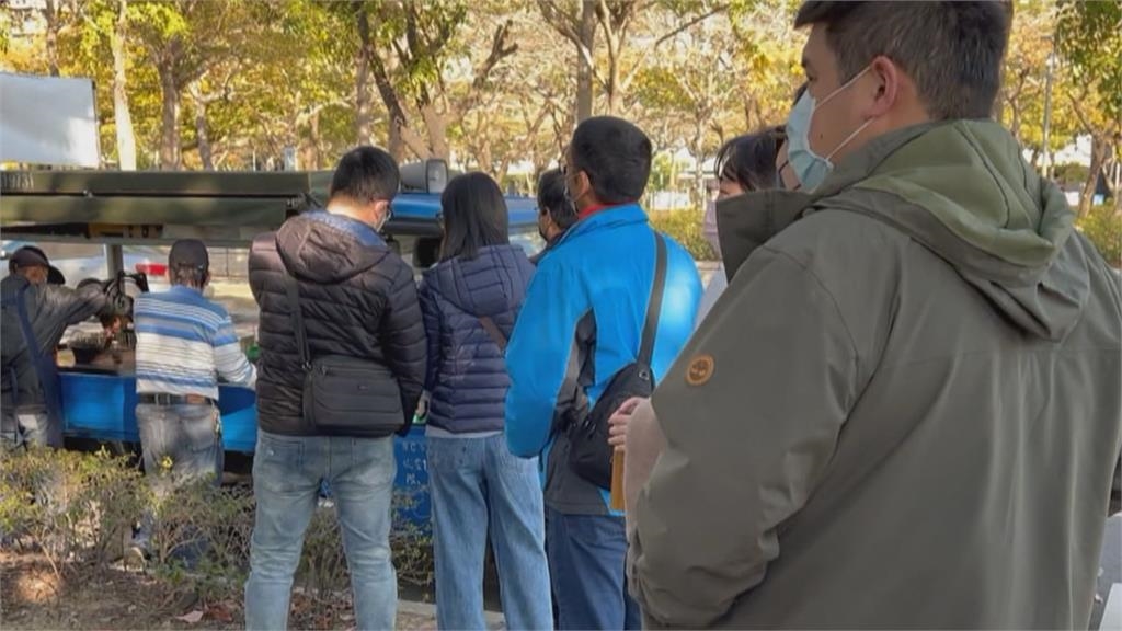 後頭長長人龍,一路延伸到公園人行道,人氣超夯。