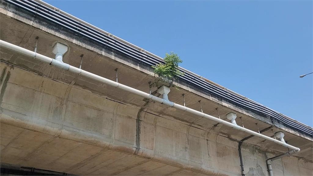 這棵小樹「樹佔溝巢」 長在高架橋夾縫間逢雨阻排水