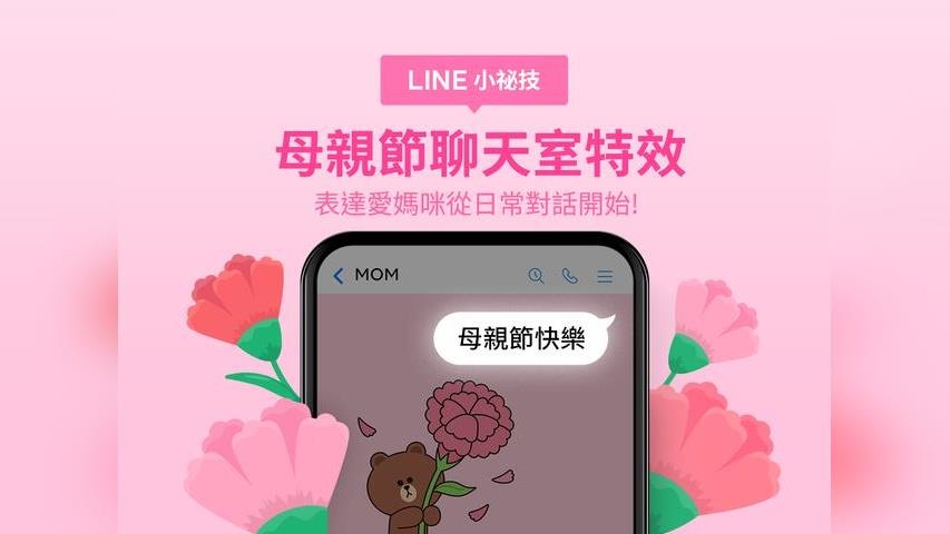 LINE官方提醒,假如輸入關鍵字還是沒有看到特效的話,可以嘗試將LINE重新開啟,或是到LINE設定中的「聊天室背景特效」中確認是否開啟,這個設定是預設開啟,若之前有不小心關掉的話,可以重新打開!相反的,假如覺得特效太過干擾,也可透過此一設定將特效關閉。此外,這次除了聊天室有母親節特效,主頁也有特效,在母親節14日當天,LINE主頁會有象徵母親節的康乃馨花束,而在LINE VOOM短影音也加入了應景的母親節濾鏡,祝福每個偉大的母親佳節愉快。