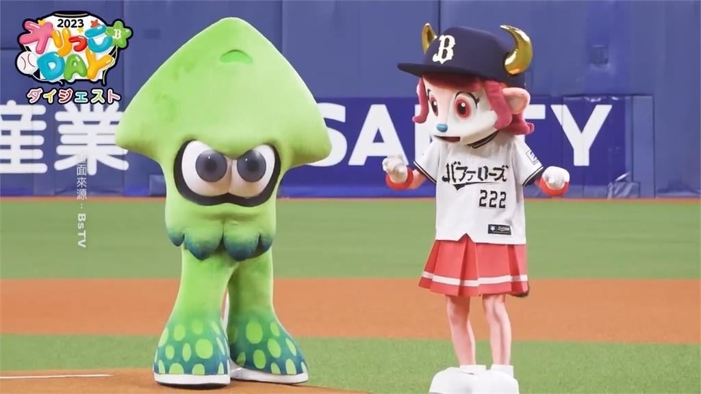 其實這隻來開球的魷魚,是人氣電玩《斯普拉遁》系列的角色,而石川亮就是這款遊戲的粉絲,這天適逢歐力士舉辦兒童主題日,球團也用這種方式,為現場的大小朋友帶來驚喜。