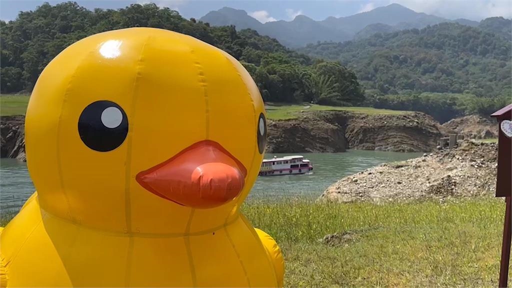 最近因為乾旱,石門水庫蓄水率降到37%,水位大幅下降,意外讓當地夢幻草原從水面下露出,當地渡船遊艇公會表示,這是枯水期的限定美景,因此特地從國外購買充氣小鴨,放在這裡給民眾來拍照打卡。另外,搭遊船也能從水上觀賞小鴨、酋長石和石秀灣等景點。