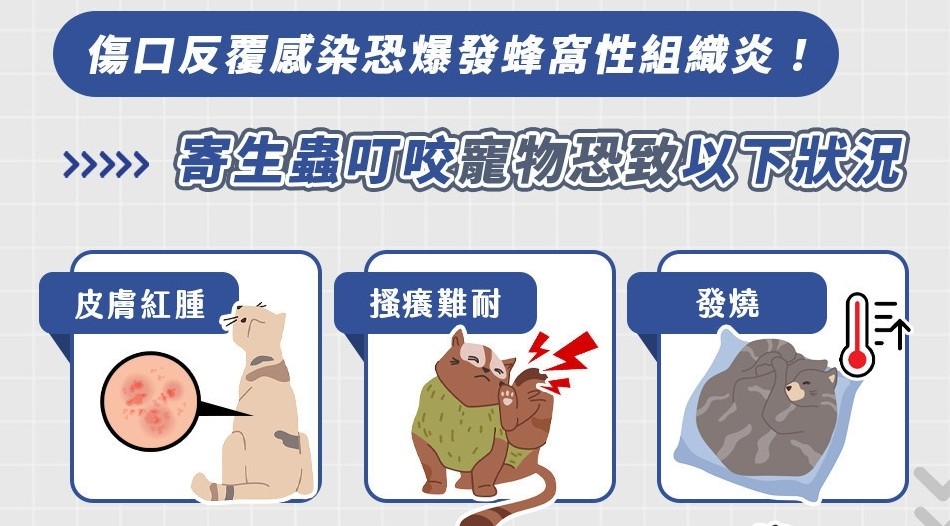 傷口感染易爆發蜂窩性組織炎! 寄生蟲叮咬寵物恐致5種後果