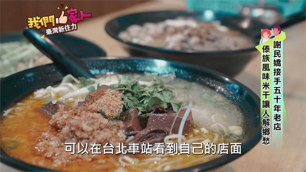 緬甸新住民謝民嬌當年因為幫朋友安排相親,卻紅娘變新娘的成為台灣媳婦,一轉眼嫁到台灣即將屆滿30年,如今他是老字號米干店的第三代傳人,保留傳統也創新口味,『傣族風味』的創意料理,是許多同鄉的最愛。