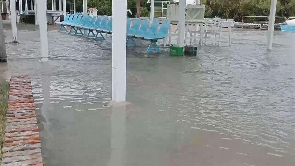 這裡是台南的「雙春濱海遊憩區」,颱風明明已經遠離,怎麼還是出現淹水景象?原因要回歸之前的「杜蘇芮」,颱風過境形成暴潮,將北門雙春沙洲沖出一條大缺口,漲潮的海水直接從破口灌入,直衝濱海遊憩區。