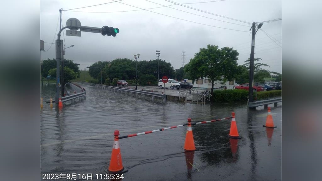 中央氣象局表示,低壓帶影響,易有短延時強降雨,今(16)日新北市及桃園市地區有局部大雨或豪雨,西半部及東北部地區有局部大雨發生的機率,氣象局針對17縣市發布豪大雨特報,其中新北為豪雨特報。新北市府表示二重疏洪道已積淹水,為顧及民眾安全,疏洪十路以北區域路段(及越堤道)只出不進,請提早配合改道。