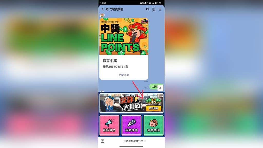 會計研究發展基金會、內政部警政署刑事警察局、台灣金融服務業聯合總會與「鬥智俱樂部」新創團隊推出的LINE問答遊戲軟體,民眾不需要下載和安裝,可以直接在LINE官方帳號就開啟遊戲。民眾只要一鍵轉發即可邀請自己的LINE好友一起玩「反詐大挑戰主題賽」。